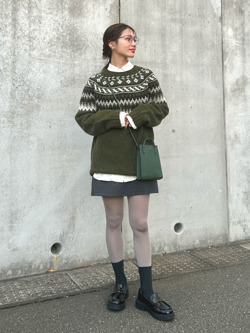 Knit💚 ノルディック柄のセーターで季節感たっぷり🎄 ミニスカートを合わせてデートにも◎