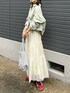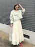デニムジャケットにティアードスカート 赤スニーカーをポイントに👟❤️ ストラップデザインが可愛いキャミはtiptopのもの☁️ カップ付きで下着に悩まないから便利です◯