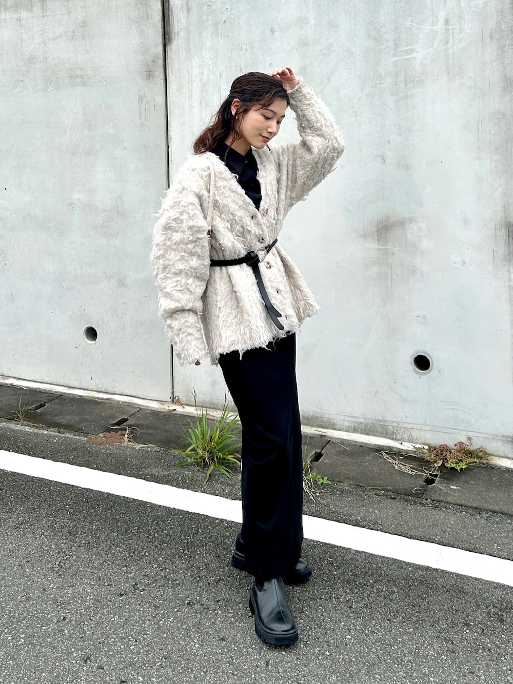 カーディガンコーデ🪧 コロンとしたフォルムのホーボーバッグ モノトーンコーデにも合わせやすくて◎ ショルダー紐がついてるので 肩掛けでも使えます👜 大きめのUバックルがポイントのベルトは 長めの作りで、アウターの上からでも しっかりウエストマークできます🎗️ 🏷️florist □【2WAY】レザータッチホーボーハンドバッグ □無段階調整Uバックル細めタイベルト #pr