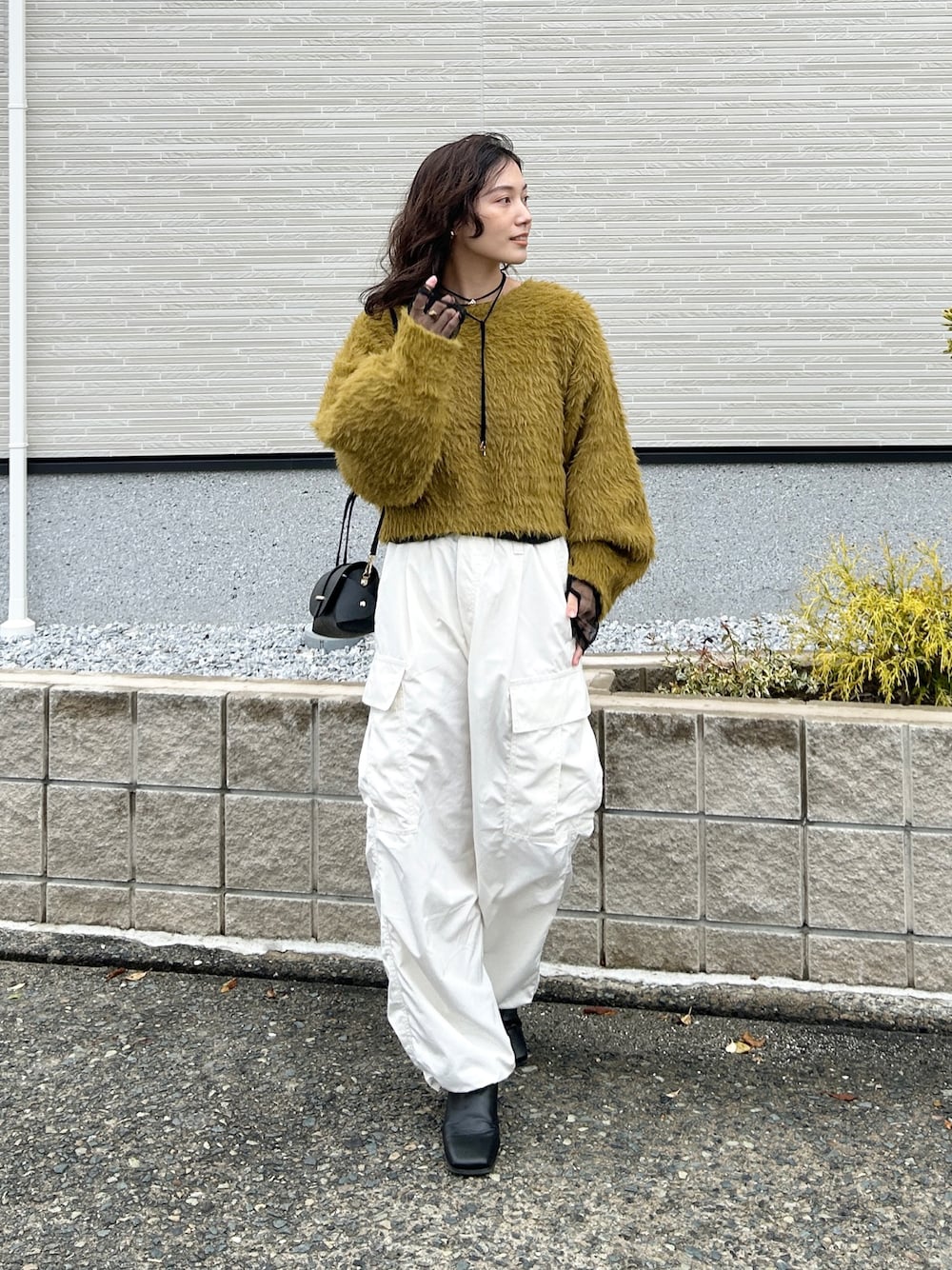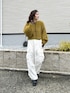 ニットにシアーを重ねて🍃 季節感たっぷりのフェザーヤーンニット ふわふわな起毛感かわいい♡ 最近オリーブみたいなグリーン選びがち◯ #pr #tipコーデ #tiptop_pocket