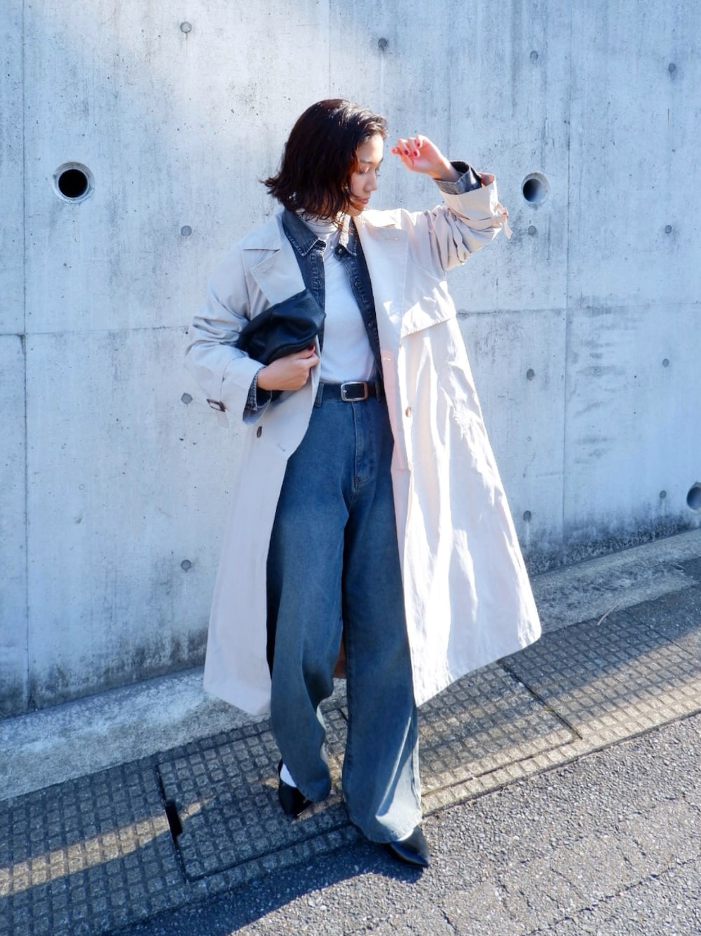 kocoaのトレンチコート「ボリューム袖ベルト付きトレンチコート【ZOZO限定アイテム】」を使ったコーディネート