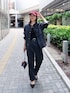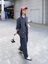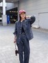 大好きなデニムの季節🍁 ノーカラーとテーパードですっきり決まるセットアップ ジャケットの袖口を捲ると文字が!! 遊び心があってかわいい♡ 柔らか素材だから動きやすくて着心地◎です☺︎ #pr #lbc