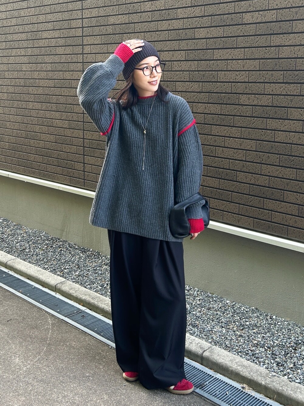 レイヤード風のデザインニット 袖口のスリットも可愛い◯ ゆったりサイズでラフにまとまります☺︎ 赤が入ると季節感もUPして可愛い🎅🏻 zozoで本日限定クーポン出てます🎫 #pr #tiptop
