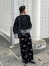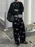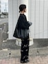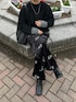 モヘアニットとベロアパンツ フラワー刺繍のおかげで オールブラックでも華やぐ☺︎ #pr #notch.