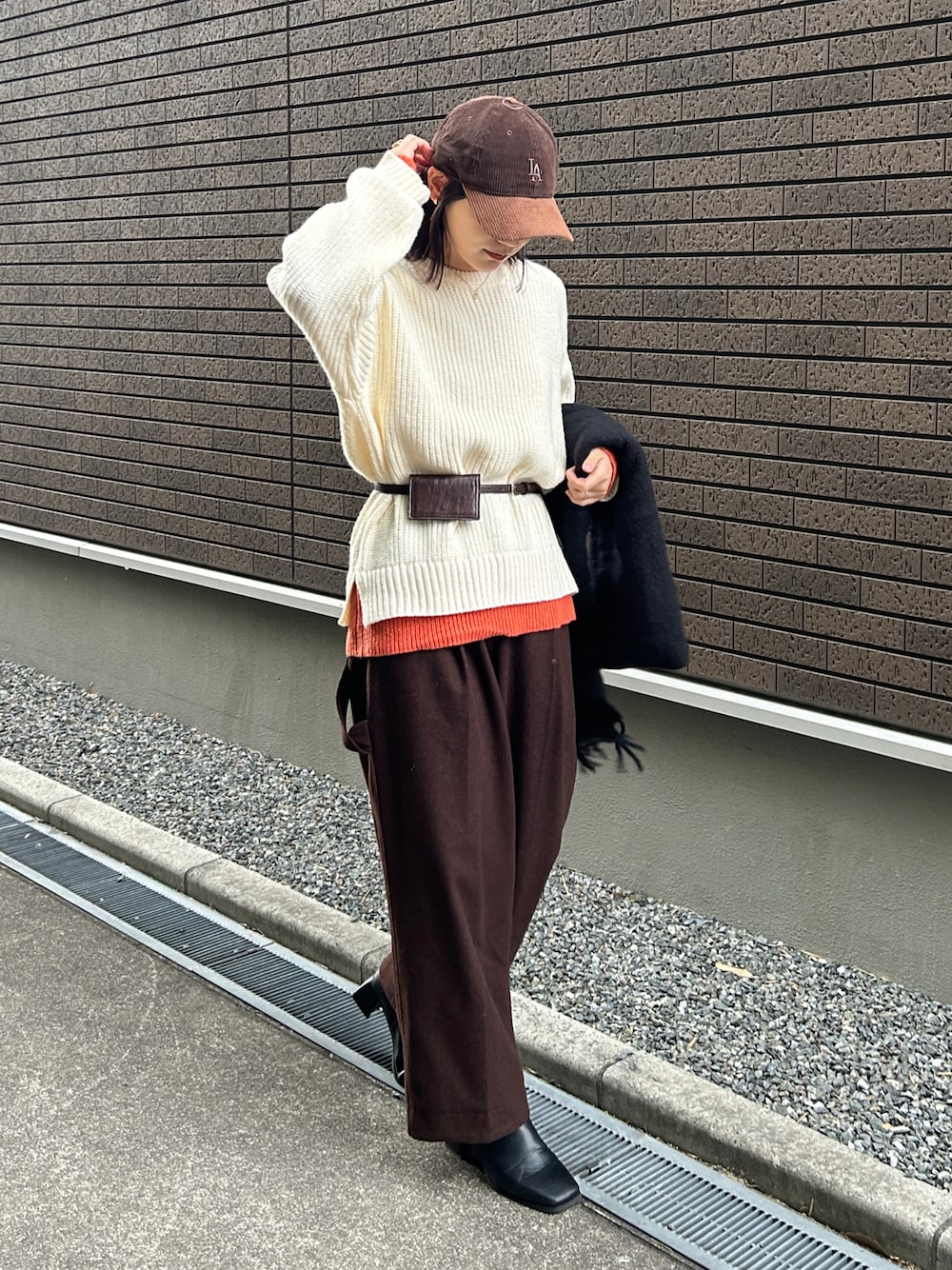 kocoaのニット/セーター「配色レイヤード畦ニットプルオーバー」を使ったコーディネート