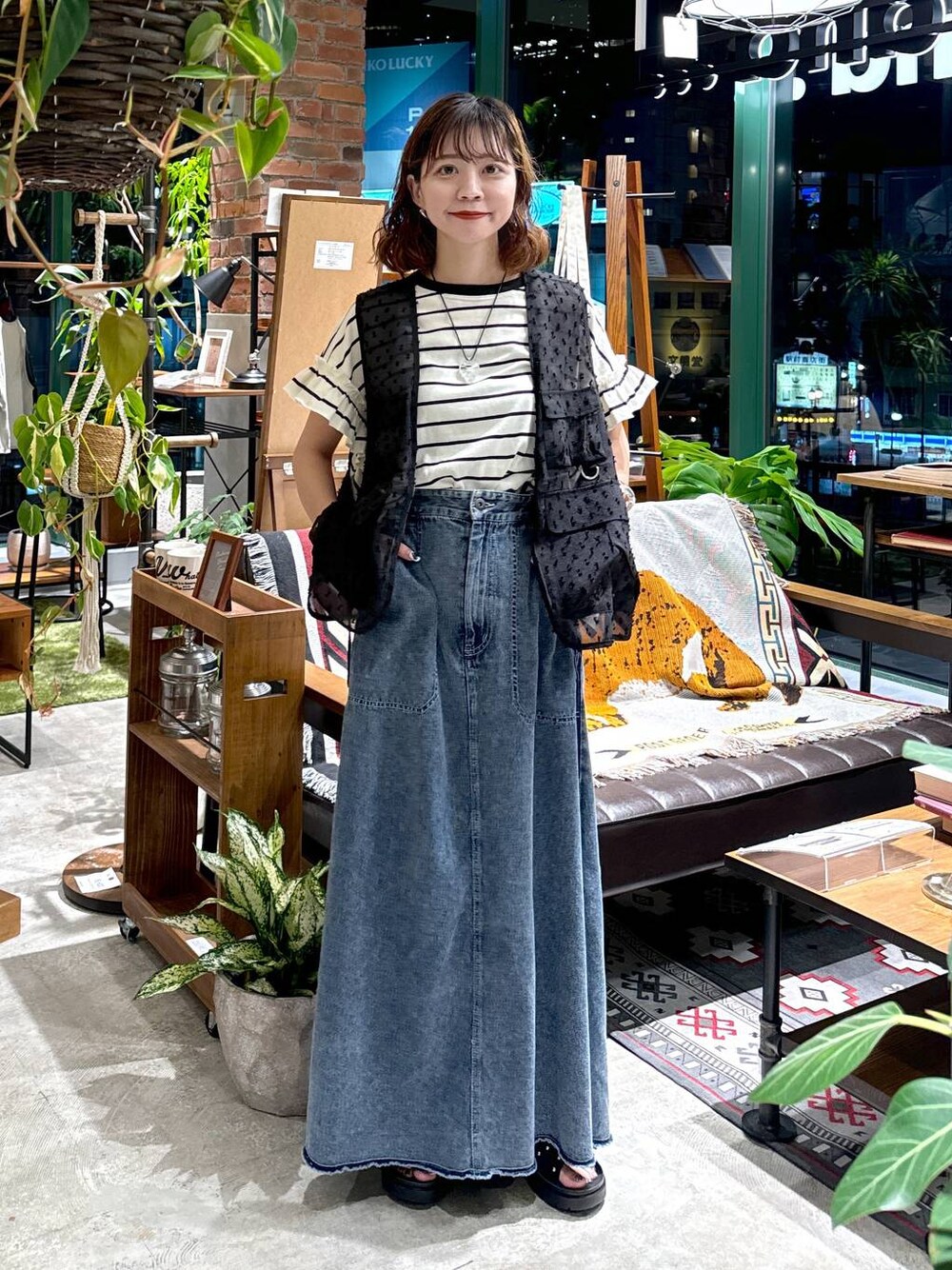 今の時期にぴったりな 新作アイテムを使ったコーデ♩ シアーベストは軽いので 涼しくて、夏場でもベタつかない🌱 あえてボーダーと合わせて カジュアをプラスしてみました◎