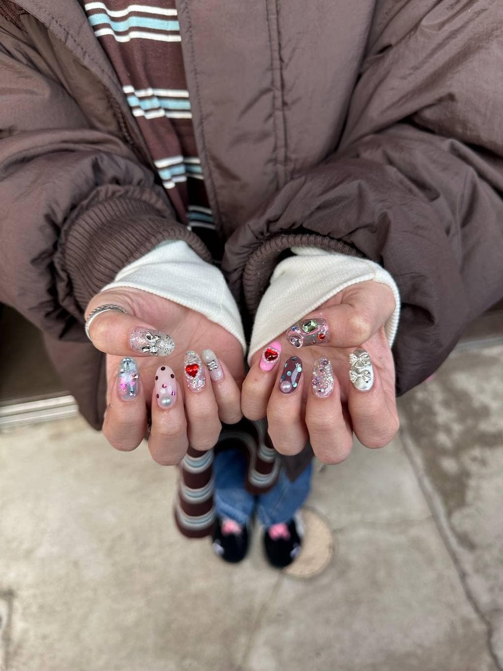 お気に入りnail🤍🩷 ピンクとリボンとドットとトレンド詰め込み! お気に入りのトップスで行ったよ★