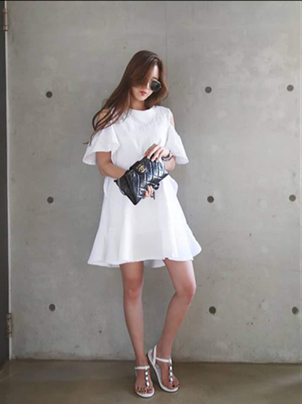 AcoDesign(アコデザイン)のワンピース「肩だし ワンピース 春 夏 大人 上品/肩あき ワンピース/ワンピース 半袖 夏 レディース/フレア ワンピ ミニスカート/ワンピース デート/コットン ワンピース」を使ったコーディネート