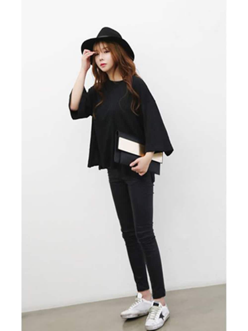 AcoDesign(アコデザイン)のTシャツ/カットソー「中折れハット レディース 秋冬/中折れハット ウール つば広/ウールハット レディース/フェルトハット つば広」を使ったコーディネート