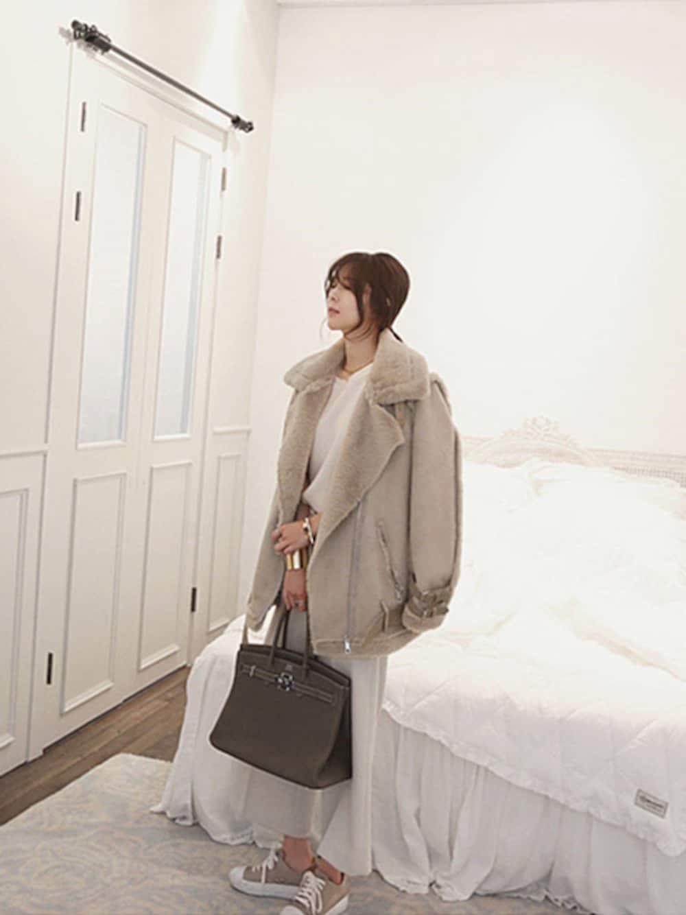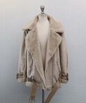 AcoDesign(アコデザイン)のムートンコート「ムートン コート ロング/ボアコーチジャケット/ライダースジャケット ファー/裏ボア コート」を使ったコーディネート