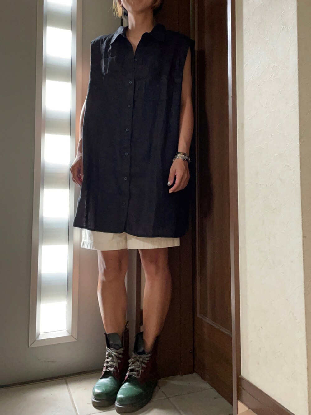 ブラックウィドウ観るのでブラック。 ハーパンは、GUのシェフパンツ。 おはようございます。