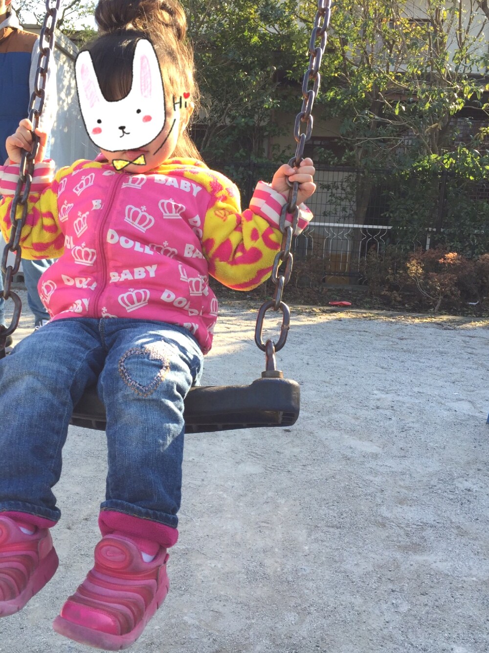 公園行きました! ダウンは6000円くらいだったかな? デニムは古着屋で300円♡ 靴はおばあちゃんに買ってもらったもの♡4000円くらい?すごくいい♡