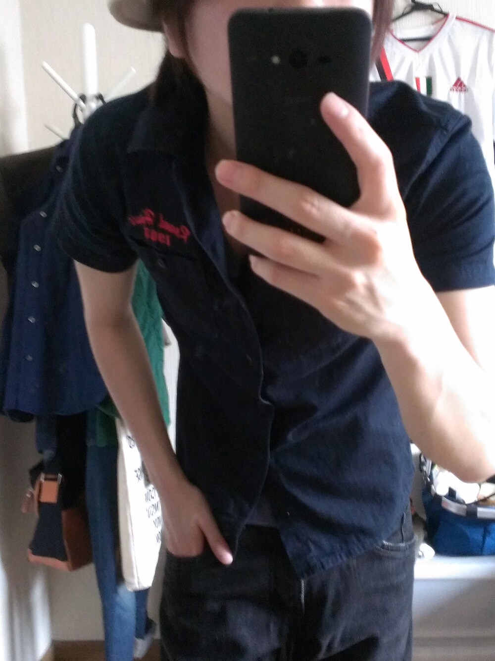 友人から貰ったROUND HOUSEのシャツ。着ようと思ったら雨あめアメ……仕方ないから部屋で着てみた(笑)
