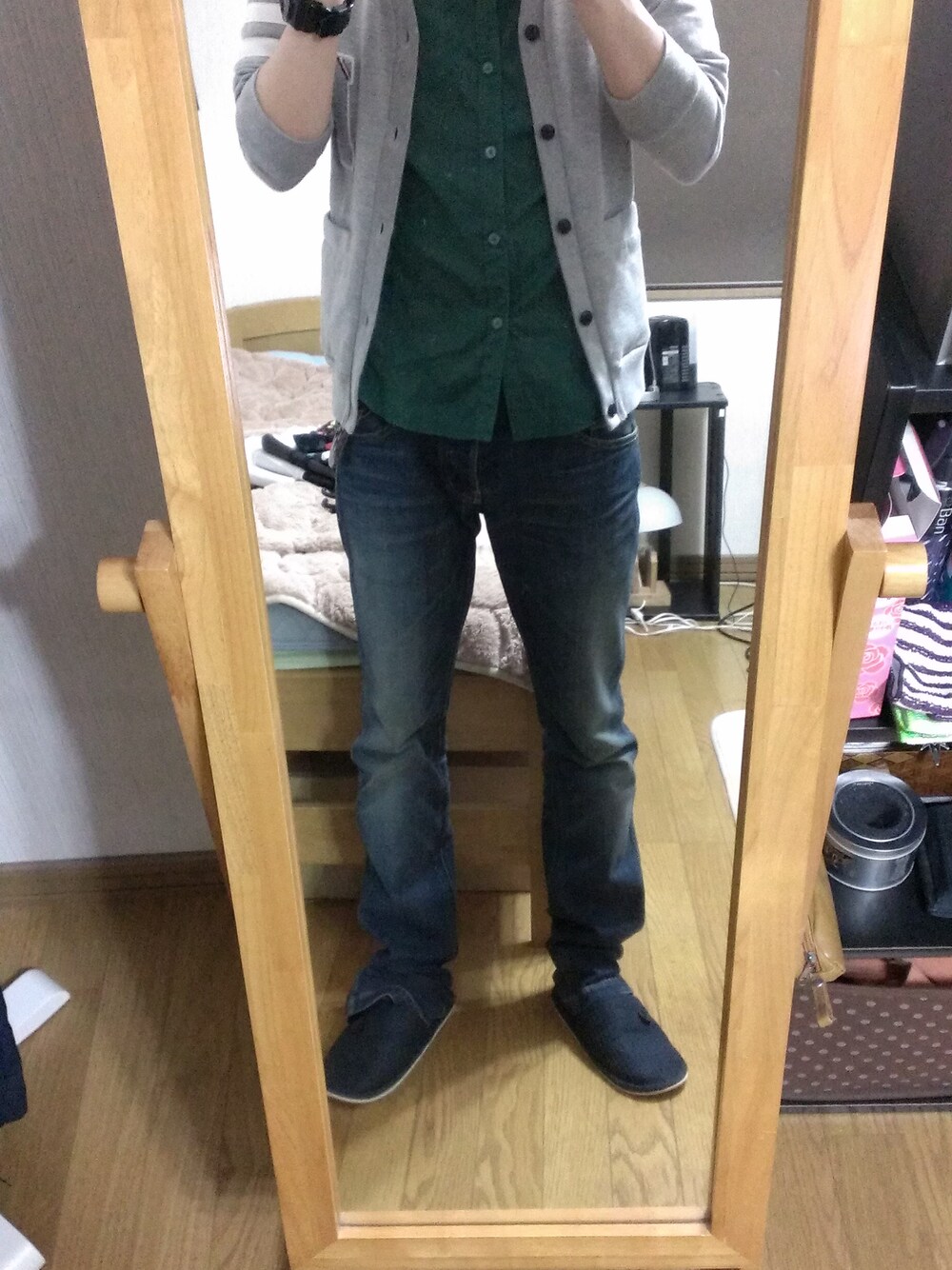夜は寒いので長袖一枚欲しいところですねー。グレーは万能!