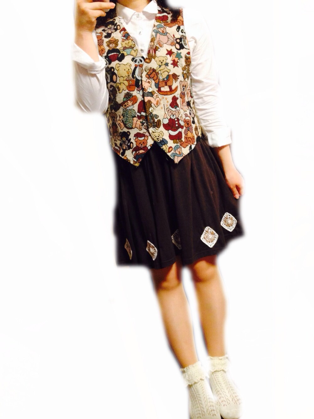 2014.05.02 ◡̈⃝ くまさんベストが主役 ⚐ 高円寺の古着屋さんで購入 ♩ みんなに好評コーデで嬉しかった ✰✰ あしたからGWじゃ 〜 ! 帰省じゃ 〜 !