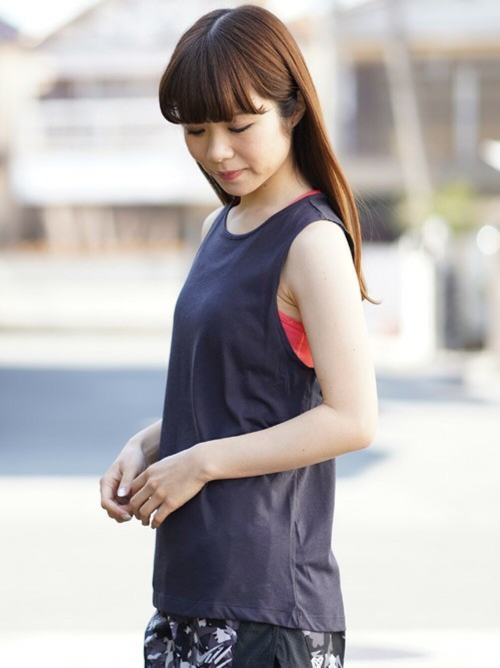 active queen staffのタンクトップ「ナイキ ウィメンズ DRI-FIT スタジオ オープン タンク」を使ったコーディネート