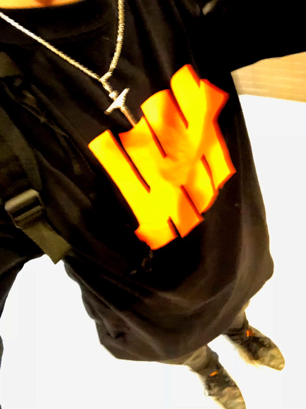 Tシャツのロゴオレンジとスニーカーのロゴがオレンジとソールの部分オレンジで合わせてみました! Tシャツはアンディフィーテッドとチャンピオンのコラボです。