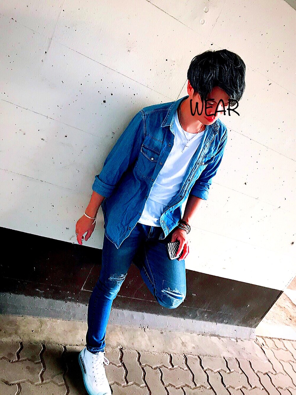 OFF-WHITE × CONVERSE CHUCK TAYLOR ALL STAR コーデ🤩 ジーンズコーデで決めて見ました😉 ブレスレットも合わせてGagaのミサンガつけました👍