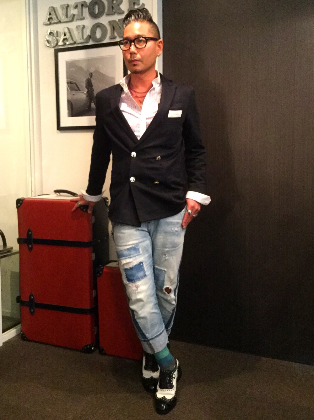 皆様 こんにちは 自分の所にわざわざ観に来て頂いて嬉しい限りです。 いつも沢山のいいね&嬉しいコメントありがとうございます‼︎ 昨日は、アカデミー賞 ディカプリオ初のオスカーおめでとう‼︎ 今日から3月 トレンチコートの老舗ブランド アクアスキュータムのユニオンジャック柄メタルボタンを付け替えた特製ダブルJK ストライプ柄のクレリックシャツを合わせ ボトムは、カジュアルダウンしたかったので ダメージデニム 上半身はクラシックスタイルですので シューズで クラシックモードのテイストを醸し出す BARKER BLACKの ウイングチップコンビレースアップ にてコーディネート ACROBE(アクローブ)お取り扱い店舗 ALTORE SALONE(アルツールサローネ) www.altore-salone.com 気になる方は、www.acrobe.jp #acrobe#mensfashion#altoresalone#tokyo#japan#menswear#mensstyle#highfashion #luxury#luxurylife#luxurylifestyle#tokyostyle#mensbrand#tomford #glasses#like4like#likeforlike#followme #メンズブランド#メンズファッション #メンズウェア#メンズコーデ#メンズアパレル #今日ノコーデ#春コーデ #ジャケット ACROBE #シャツ Dsquared2 ボトムス #dsquared2 シューズ #barkerblack #シルバーアクセ ClaudioCalestani