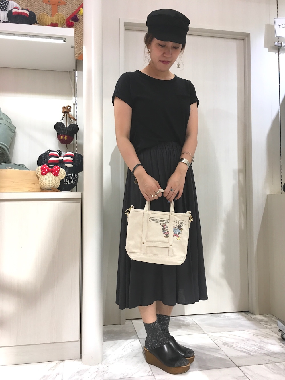 脇田智子のトートバッグ「Disney(ディズニー)キャンバスミニトート」を使ったコーディネート