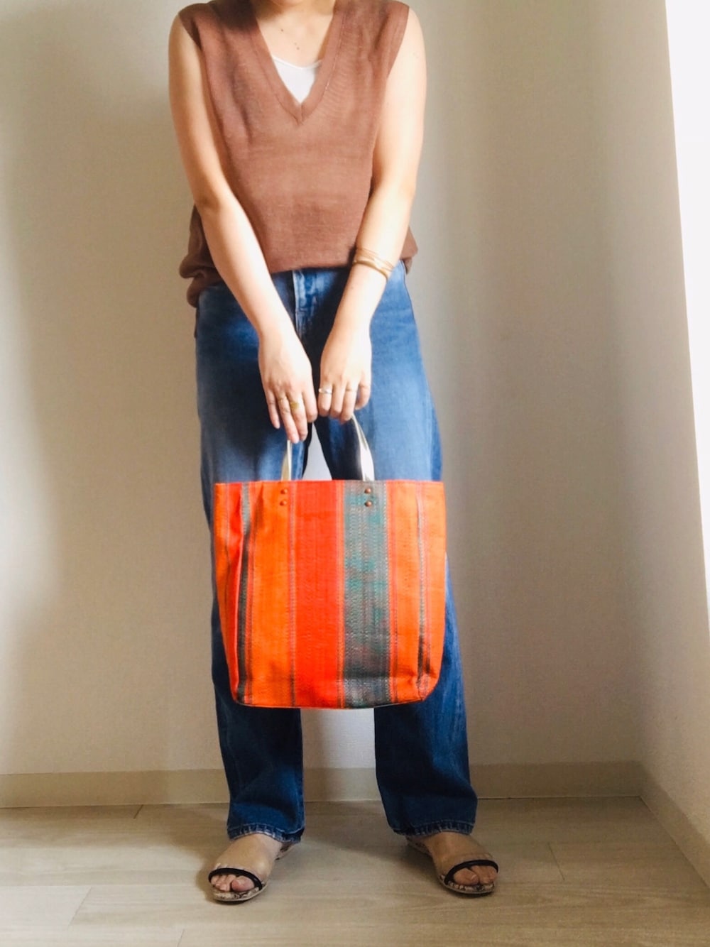 脇田智子のトートバッグ「マダガスカルラフィアトート」を使ったコーディネート