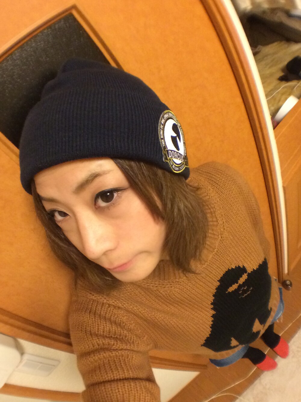 お気に入りのビーニーとざっくりニットを元気よくショートパンツで(●´ー`●)