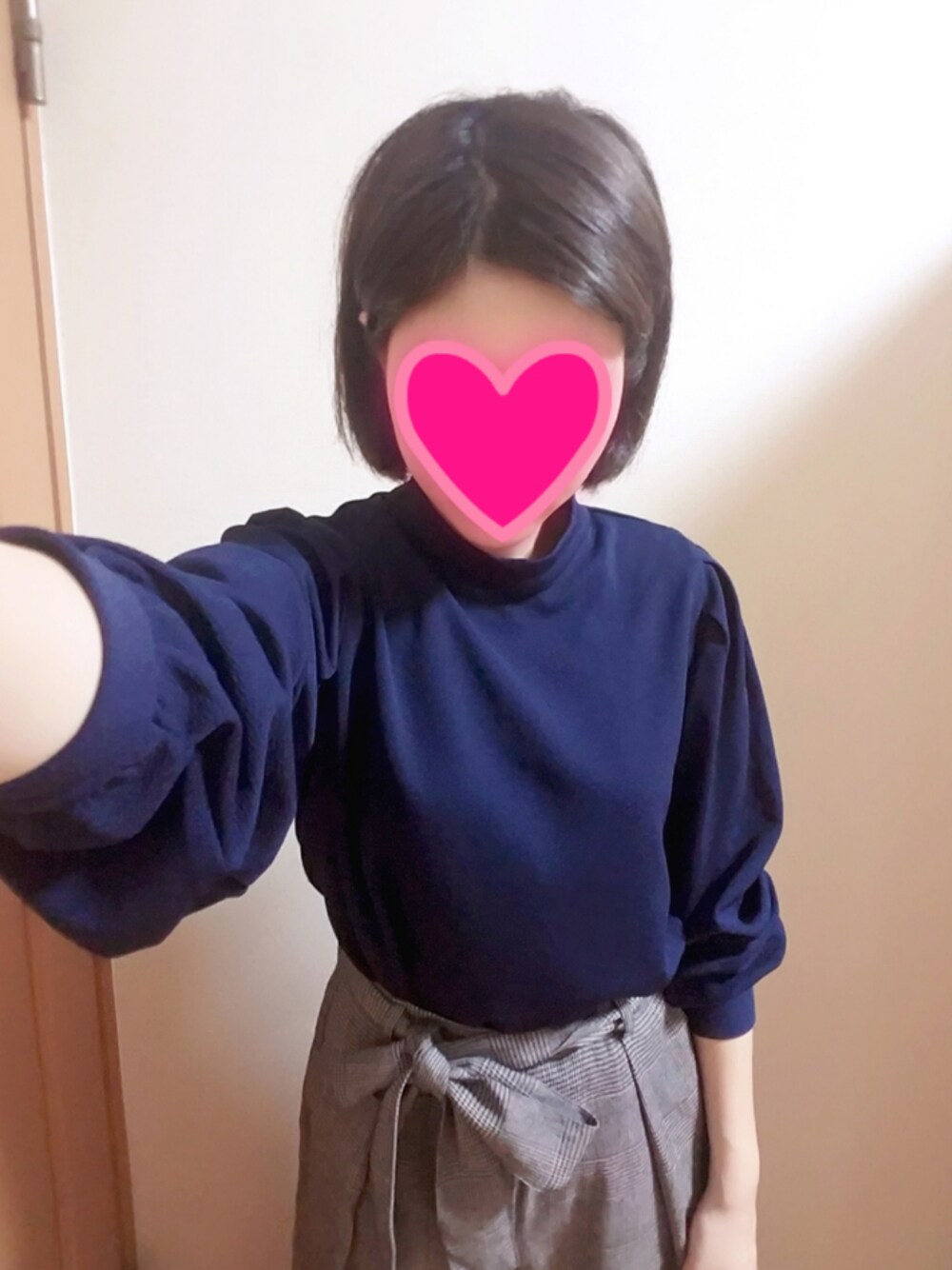ブルー系のトップス、グレー系のパンツを着用したレディースの秋コーディネートの1枚目の写真