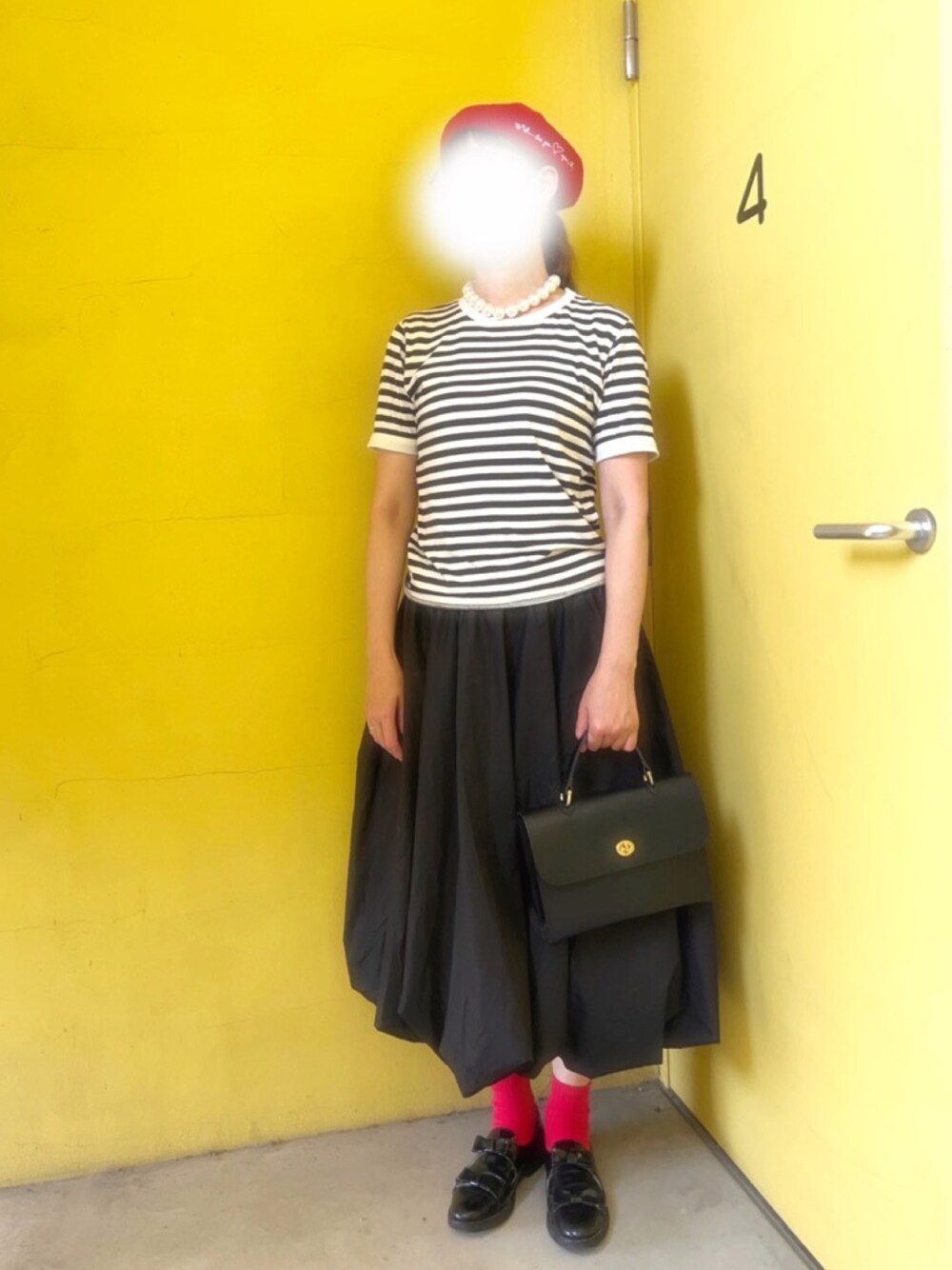 ジャストサイズのTシャツは、 暑く感じました… 丈感が気に入っている、 バルーンスカートと♪ ♪White Stripes / Blue Orchid