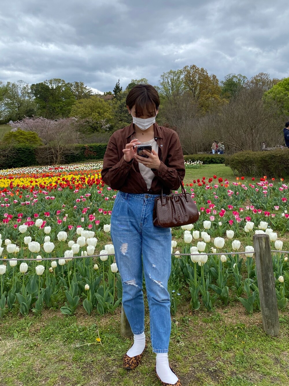 デニムにシャツ重ね着からの出すのもかわいいけどインするの好き🌷 レオパード柄のペタンコ靴楽ちん
