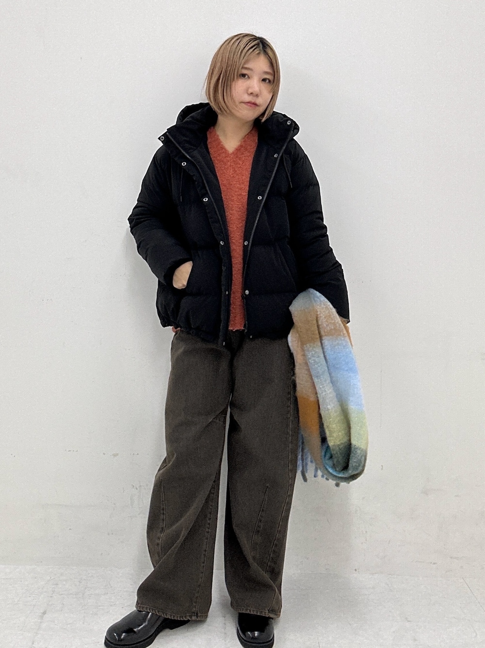 撥水機能が付いたダウンは、急な雨でも安心! シンプルなデザインは、どんなアイテムとも相性◎です。 163センチでお尻被るくらいの着丈。 裾を絞るともう少し短くなります! 今回は中にもこもこニットを着て見ましたが、むぎゅっとならずに着れました! (ベイマックスみたいにもなりませんでした🫡) 上まで閉めると、首元が立ったデザインのため暖かく、フード取り外しも可!(ジップで取り外せます!←大事) ツヤツヤしてない、ちょっとマットなカラーは 30代には嬉しい落ち着いた印象になります! 袖口にはリブがあり、風が入ってこないので 自転車送迎族の私には嬉しいポイント!