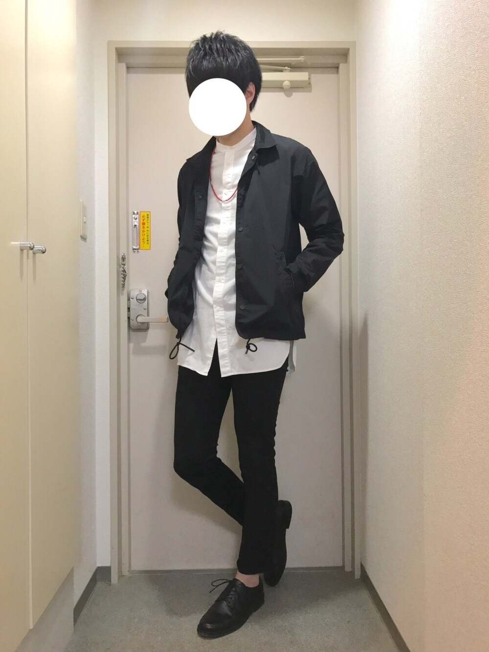 コーチジャケットーーー! 差し色に赤のビーズネックレスを使用しました😁 よろしければ、 いいね・お気に入り・フォローよろしくお願いします😊