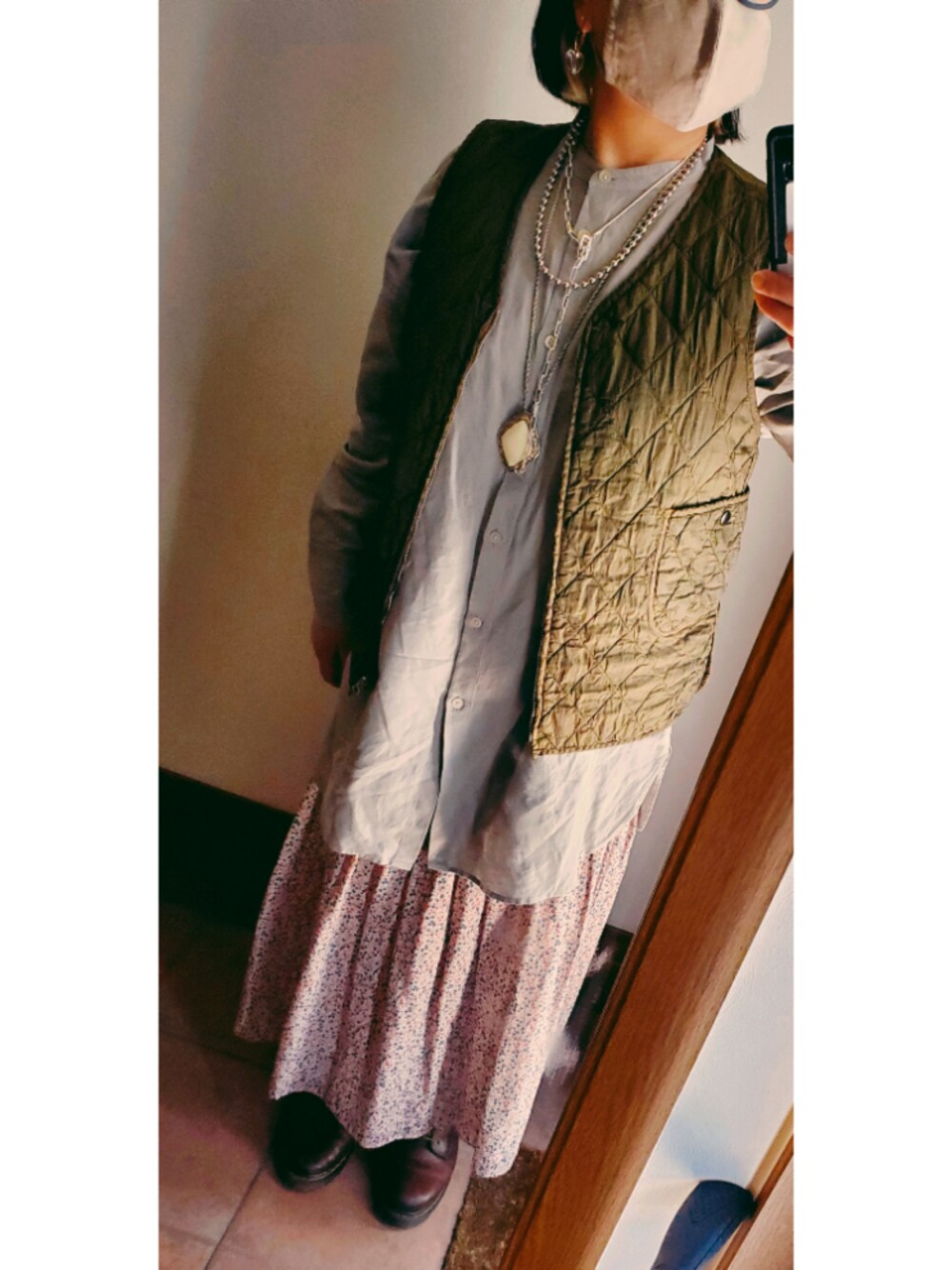 こんばんは シャツは基本 バンドカラーです ベストは左右のポケットが アシンメトリーで 後ろにも ポケットがデザインされてて おかわ です Dr.Martensは 辞められません そして 安定の シャツの皺