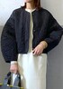 こんにちは! いつもご覧頂きましてありがとうございます。 春におすすめのブルゾンをご紹介いたします。 アダムエロペで毎回人気の春アウターです!! キルティングの柄とシルエットのバランスが可愛いです。 とても軽いので着やすく、また、肉厚なインナーを入れてももたつかないところも嬉しいPOINTです♡ 私はフォルムニットワンピースと合わせてみました。 小物はNOMADISの別注バッグにして大人カジュアルなスタイリングで普段からちょっとしたお出かけにもおすすめです♪
