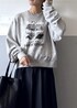 こんにちは! いつもご覧頂きましてありがとうございます。 Obladaの人気スウェットをご紹介いたします。 たぷっとした袖と腰にかかるくらいの着丈のバランスがとても可愛いスウェットです。 プリント柄が目を惹くので一枚着としてもインナーにしても◎ 裏起毛ではないのでシーズン長く着用できそうです! 私はEMOELLEのスカートと合わせてコーディネートしてみました。 猛暑も落ち着いてきたのでもうそろそろ着用できそうです♪