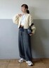 こんにちは!東原です。 (Instagram→adam_to_hara) EMOELLEから新作もどんどん入荷してきております✨ 今回は立体的なケーブル編みが可愛いカーディガンをご紹介します◎ ボレロっていうのが使い勝手も良くてオススメです♡ ボトムは本当に何と合わせてもバランス良くてかなり着回せます◎ 今回はニット×ニットで合わせました☺️ 違う素材感、違う編み地でも、インナーをニットじゃないもので合わせたら良いかなと思います◎ 是非チェックしてみてください⭐