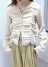 シャーリングがポイントになり 一枚でスタイリングが決まるデザイン♡ 二枚仕立てなのでしっかり暖かく、 秋は羽織として、寒くなってきたら アウターのインナーにと着回し力も◎ 今回はベージュのワントーンで まとめてみました^^ 是非チェックしてみてくださいね。