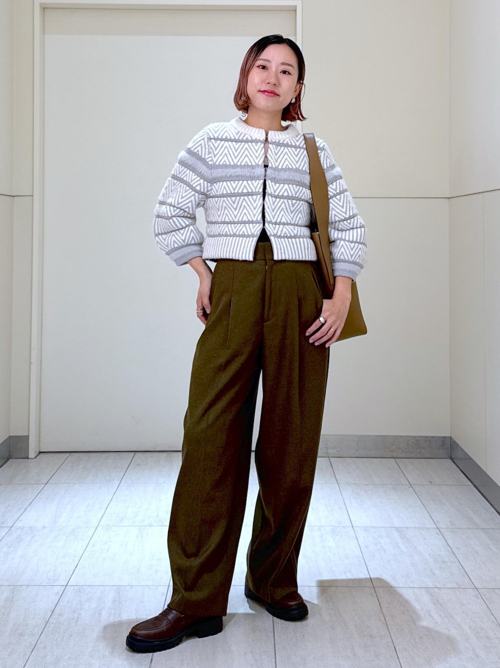 こんにちは! いつもご覧いただきありがとうございます^^ ルクア大阪の久保田です! ジャガード柄が可愛いカーディガンをキレイめにスタイリングしました! カーキのウールスラックスとローファーできちんと感もプラスして、オフィスカジュアルでもお使いいただけるスタイルに。 そのままご友人とご飯に行ったり、お仕事終わりのプライベート時間でも映えるコーディネートに少し早いですが、忘年会等、会食が増える時期かと思います! お仕事終わりのプライベート時間にもピッタリなスタイリングにしてみました^^ 是非チェックしてみてくださいね!