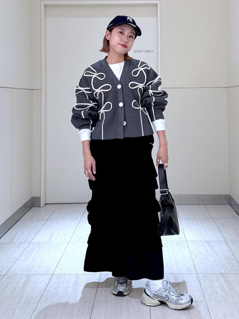 こんにちは! いつもご覧いただきありがとうございます^^ ルクア大阪の久保田です! ラインニットカーディガンがやっと再入荷しました! 前回はホワイトを着用したので今回はグレーでフェミニンスポーツミックススタイルに!(長っ!) リボンっぽいラインとフリルスカートが甘めな合わせなので、 カラートーンをダークにし、キャップとスニーカーで カジュアル感をプラスし、甘すぎたい大人フェミニンなコーデに仕上げました! アウターの下にも合わせていただけますし、 春先の羽織りとしても活躍すること間違いないので なくなる前に是非チェックしてくださいね!