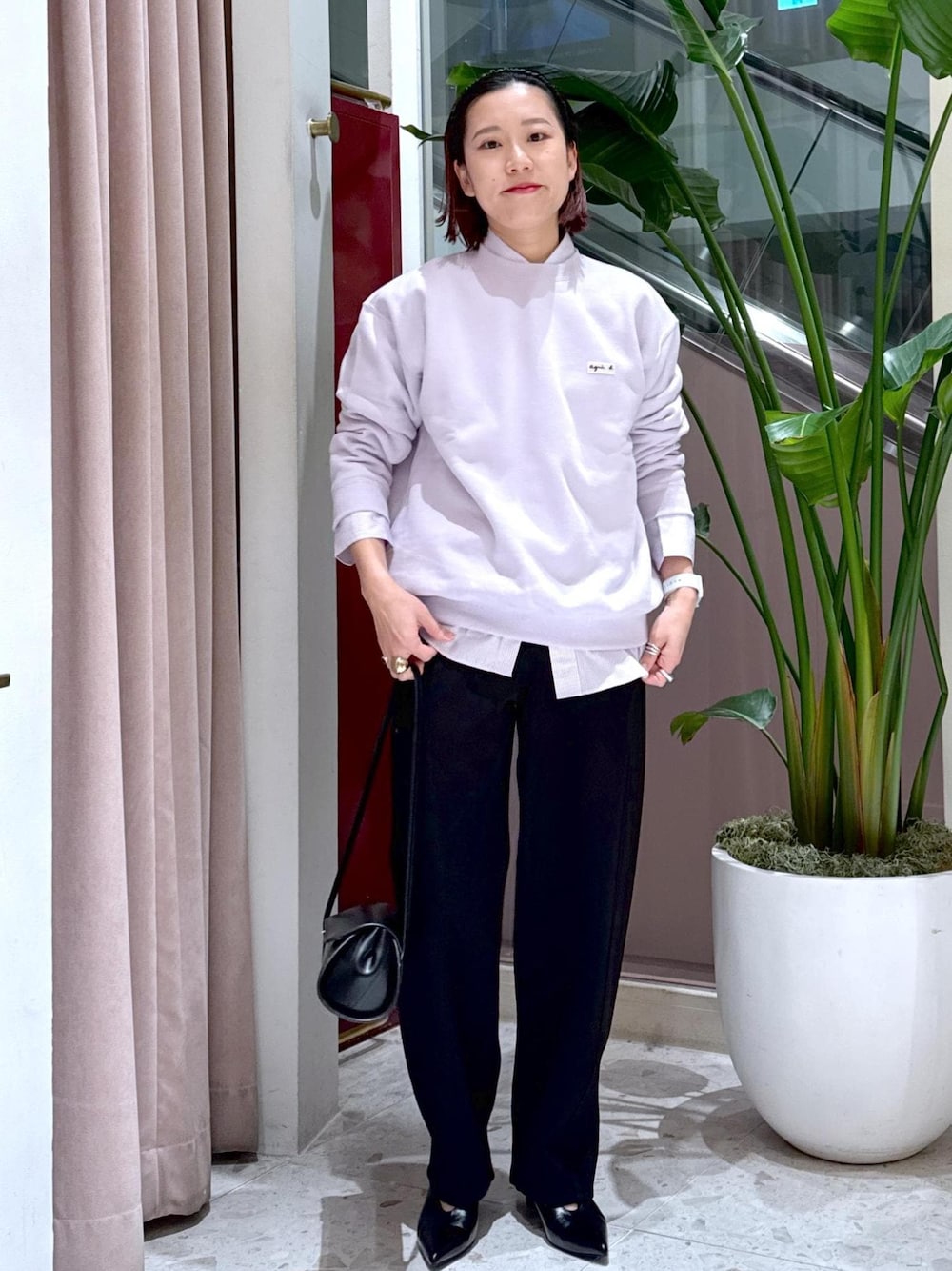 こんにちは! いつもご覧いただきありがとうございます^^ ルクア大阪の久保田です! agnes b.の別注スウェットで 大人モードコーデのご紹介です! ラベンダーのスウェットにHOMME girlsのパープルのシャツでワントーンでまとめ、他はブラックにすることで大人モードな仕上がりに! ハンサムなスタイルなので、カチューシャで甘さをプラスしました! 是非チェックしてみてくださいね!