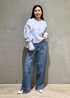 バブルVネックプルオーバーを使ったワントーンコーデ◎ ゆるいシルエットが可愛いニットです♪ ボトムはデニムでカジュアルに、足元はパンプスで女性らしく。 全体のカラーを統一するとオシャレに見えておすすめです♪