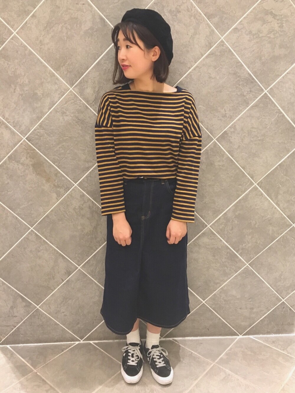 いつぶり!のスカートを履きました💃🏻 ボーダーも秋カラーでかわい🍂 黒ベースの同系色で統一感だしました✌︎