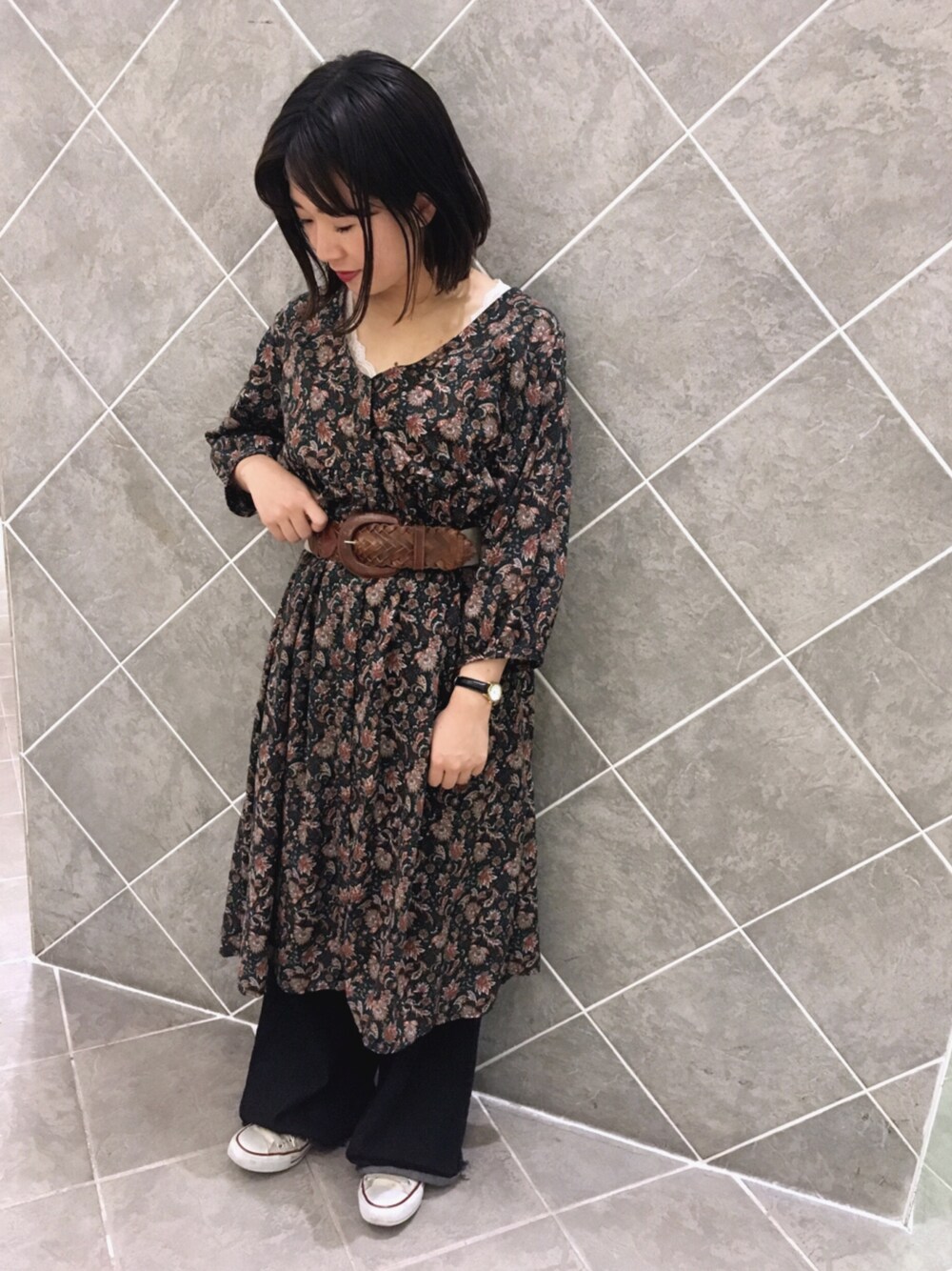 大人気セットアイテムのペイズリーシャツディガンを今日はワンピースとして👗 ベルトでウエストマークすると 脚長効果でスタイル良く見えます🙆🏻