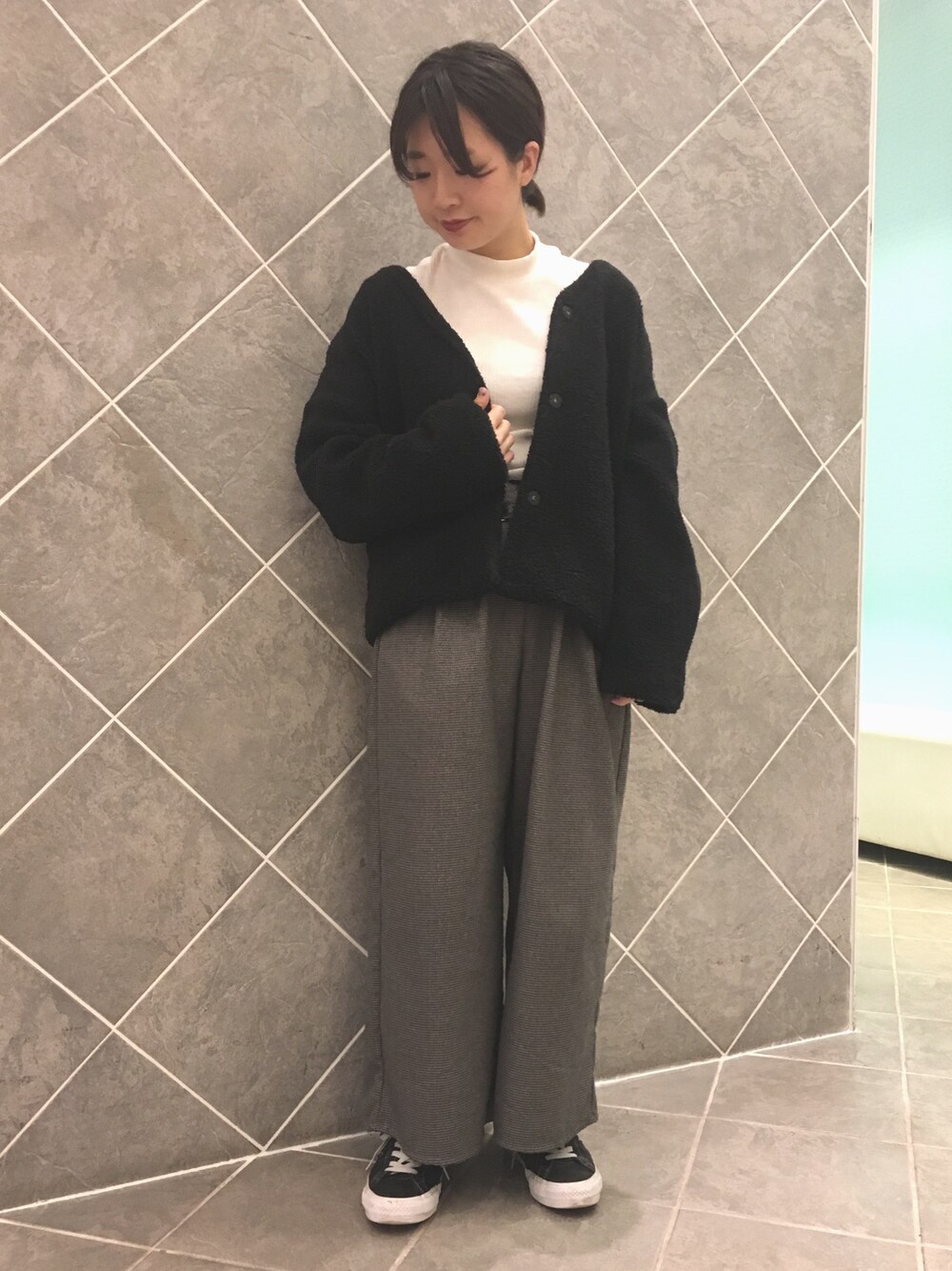 トレンドのボアコート 肩を抜いてルーズに着るのが気分! モノトーンで大人っぽく合わせました!