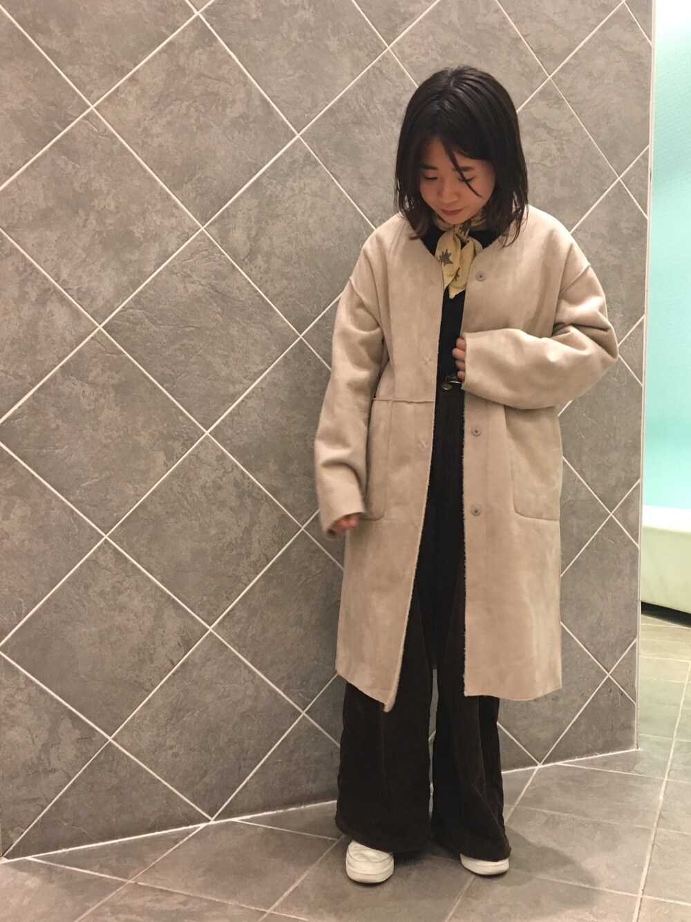 ちあきのムートンコート「フェイクムートンボアロングリバーシブルコート ○*」を使ったコーディネート