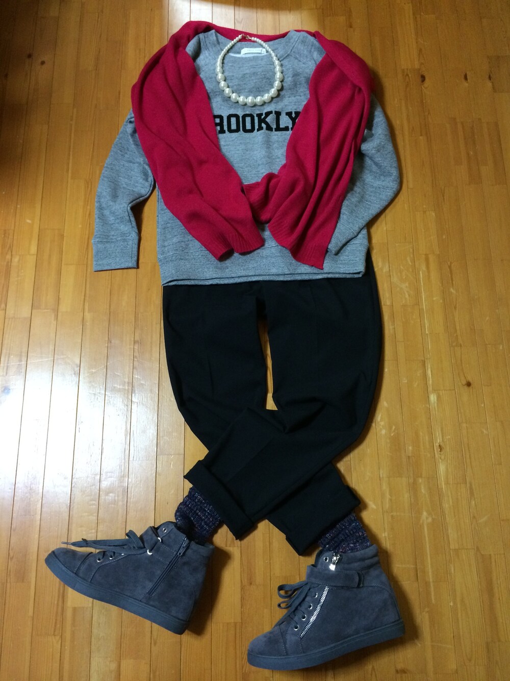 さっきのコーデのパンツバージョン。 パンツはUNIQLO。靴下は靴下屋。 ストール、アクセはGUです。