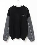 A.D.C.L.(Ada.)のニット/セーター「刺繍ロゴ入り 袖デニム切替 ニットプルオーバー」を使ったコーディネート