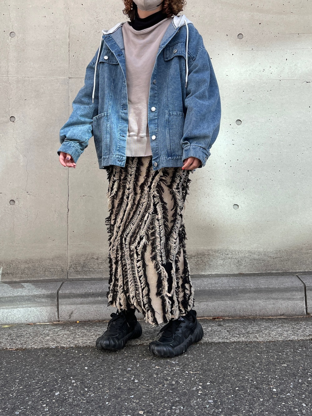 A.D.C.L.(Ada.)のデニムジャケット「フード付き オーバーサイズ ビックシルエット デニムジャケット(Gジャン)」を使ったコーディネート