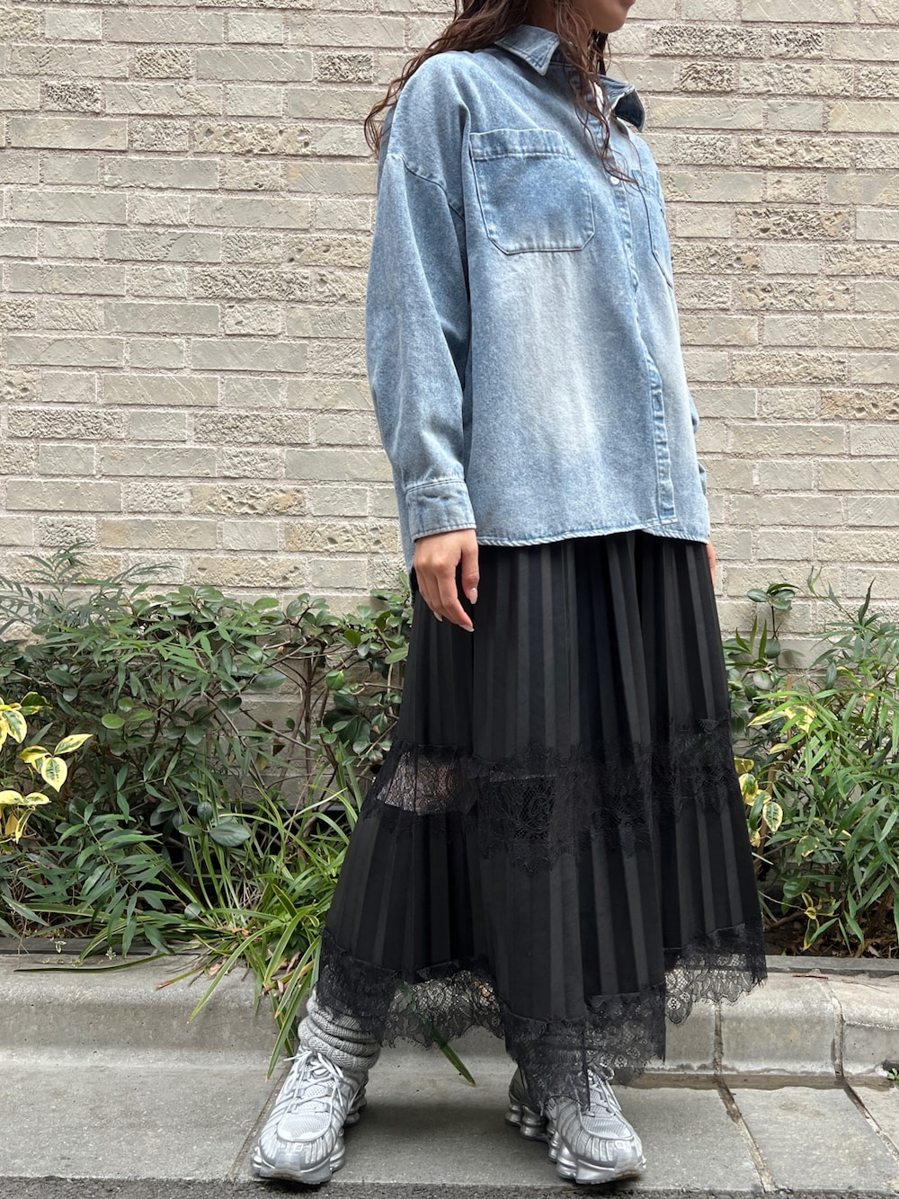 デニムシャツにプリーツスカートを合わせたカジュアルコーデにしてみました! 明るめのシャツなので、ボトムは暗めの色だと合うかなと思います🌸