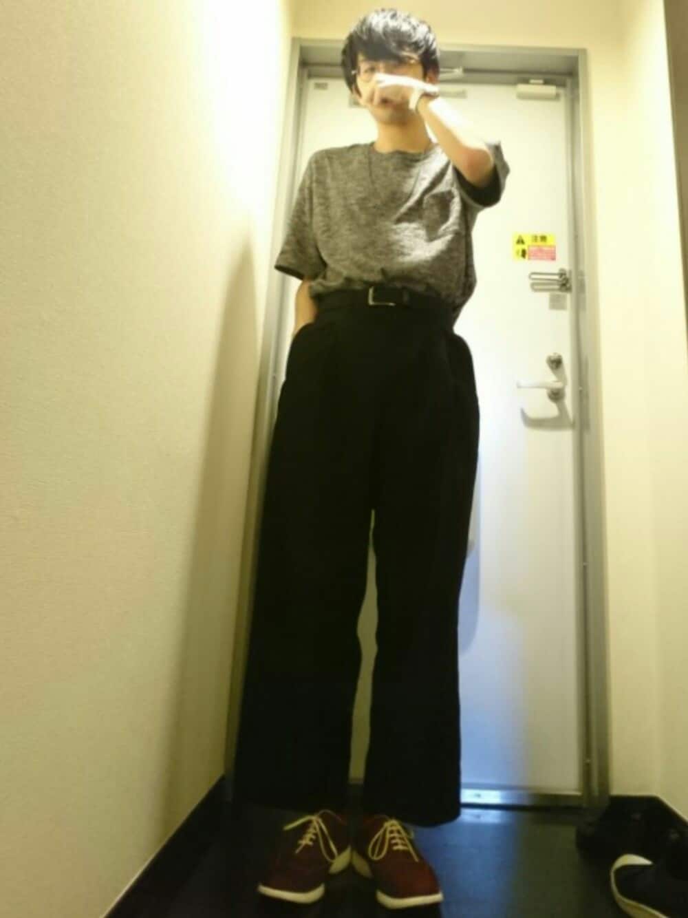 タックインばかりしてる気がする今日この頃 ビッグT着てるときのこの袖の長さが堪らなく好き わかるかな わからんか バニスターのレンガ色のこの靴は最近買ったお気に入り☺