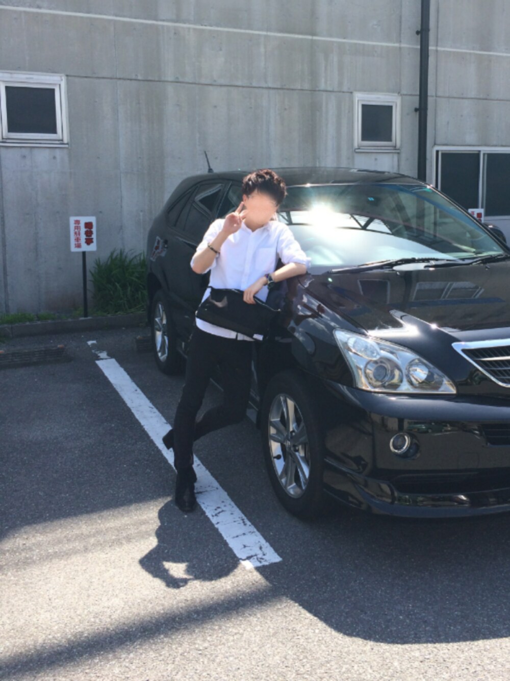 こんにちは☺ 東京は最近雨ばかりで嫌になりますね😓 今回は凄く普通のコーデ シャツに黒スキニーです☺ なかなか細くてキモいですね ちなみに車は友達のです☺